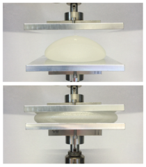 The video shows a compression test of a silicone breast implant.